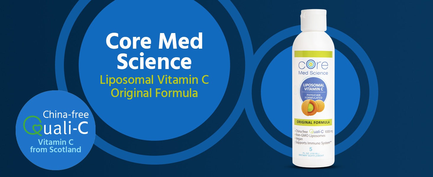 Core Med Science Liposomal Vitamin C Original Formula is a high quality liquid dietary supplement that provides vitamin C (ascorbic acid) encapsulated in liposomes for bioavailable antioxidants that help promote healthy immune function, stress response, and collagen formation.